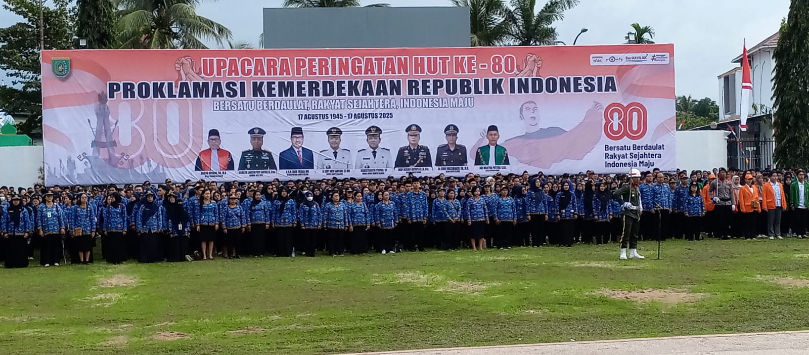 Republikinformasi .com //Buntok, Kalimantan Tengah – Pemerintah Kabupaten Barito Selatan menggelar upacara peringatan ke-80 Proklamasi Kemerdekaan Republik Indonesia dengan tema “Bersatu Berdaulat, Rakyat Sejahtera, Indonesia Maju”. Upacara dilaksanakan di halaman kantor Bupati Barito Selatan, dengan khidmat dan penuh semangat nasionalisme. pada hari  Minggu  17/08/2025 pagi