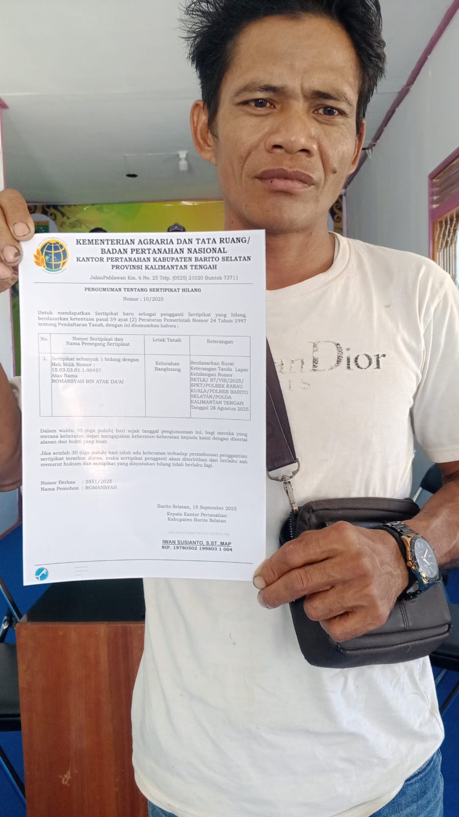 SERTIFIKAT TANAH HILANG, BPN BARITO SELATAN TERBITKAN PENGUMUMAN RESMI