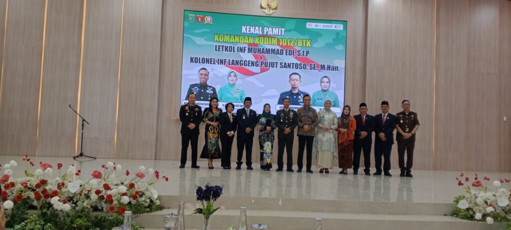 Republikinformasi. com //Aula Kantor Setda Barito Selatan menjadi saksi bisu prosesi kenal pamit Dandim 1012/Buntok pada [Tanggal]. Letkol Inf. Muhammad Edi, S.I.P., resmi menggantikan Letkol Inf. Langgeng Pujut Santoso, S.E., M.Han., sebagai komandan distrik militer yang baru. Acara tersebut dihadiri oleh Bupati Barito Selatan Eddy Raya Samsuri, Wakil Bupati Khristianto Yudha, Pj. Sekretaris Daerah Dr. Ita Minarni, Kapolres AKBP Jecson R. Hutapea, serta unsur Forkopimda, OPD, dan tamu undangan lainnya.01/10/2025